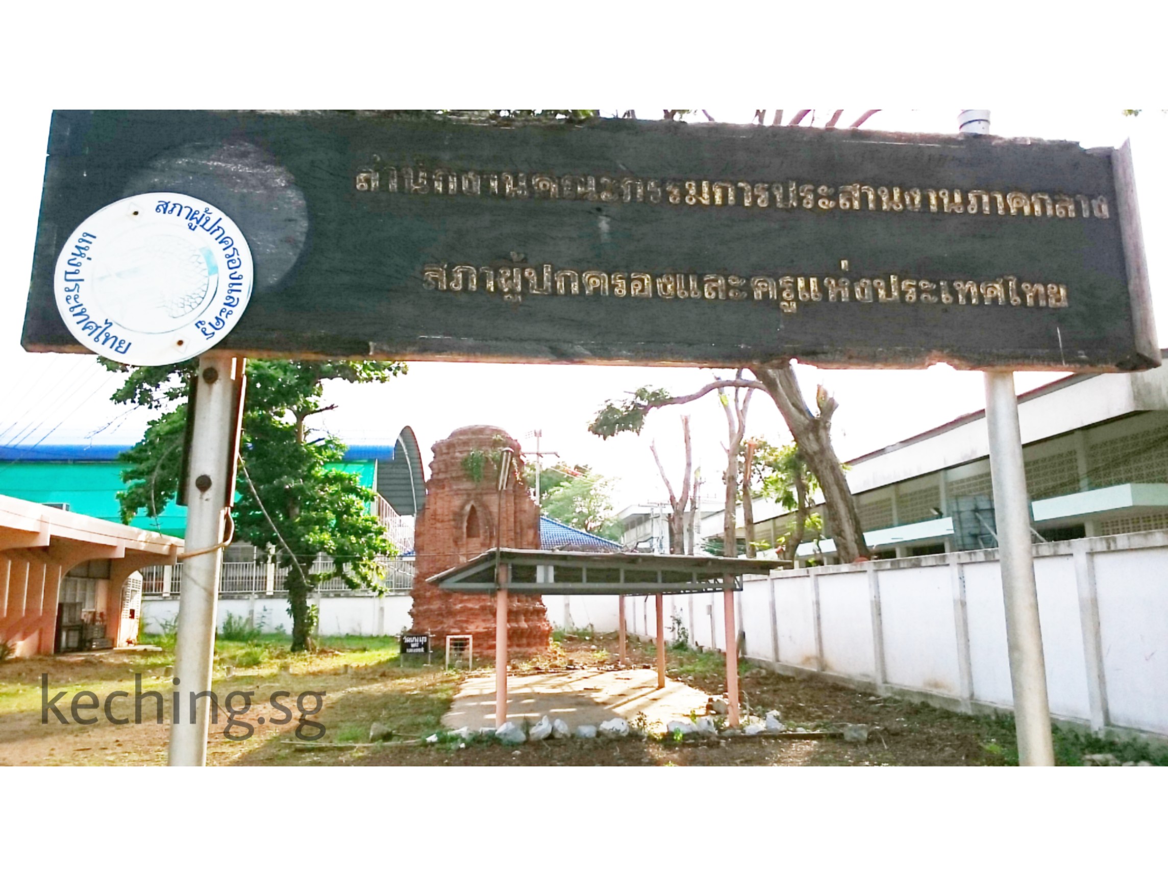 While walking to a main attraction, Wat Mahathat, we walked past regular buildings with remnants of ancient Ayutthaya in them. We can see the characteristic red bricks they were built with.
