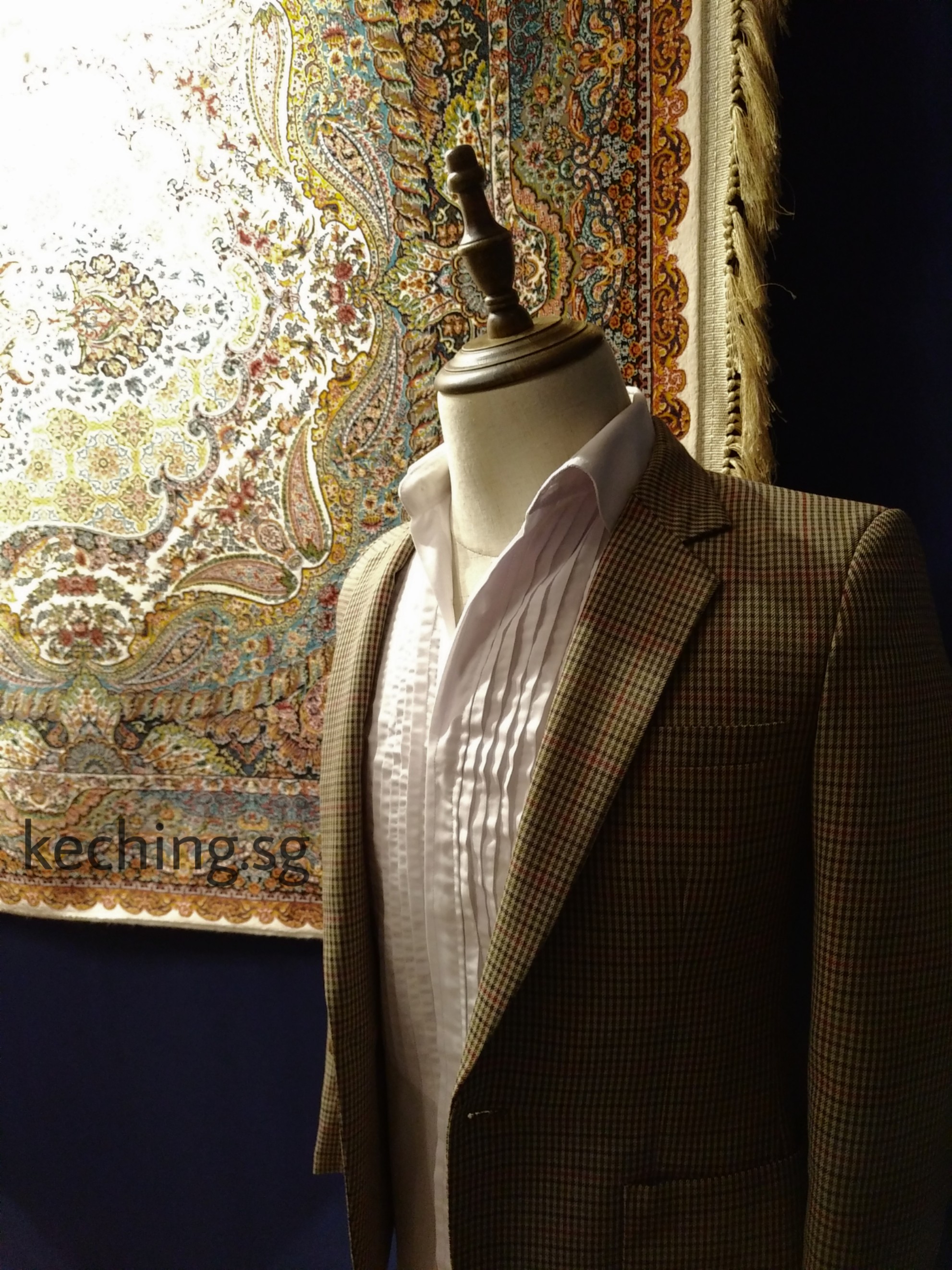 Some hilarity ensued because I couldn’t button the collar button and second button around this mannequin. I am so small sized back in 2012, when I tailored this shirt and jacket in Bangkok, that my clothes can’t fit on this free size mannequin.