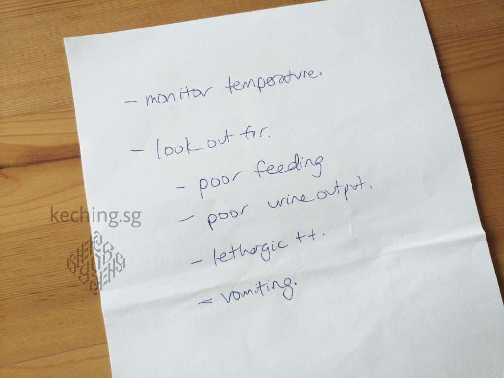 Three trips were made to the public Polyclinic on Friday, Saturday and Monday, during which two blood tests and one urine test were conducted. The consecutive blood tests detected dropping white blood cell and platelet count. Hence, we were recommended to take our girl to the hospital A&E department.