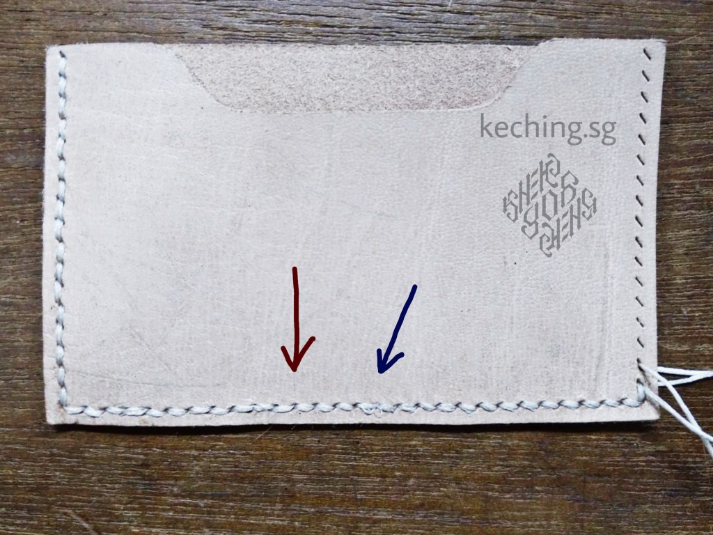 You can see his irregular stitching on the left side of the cardholder and my neat zigzag stitches on the right.