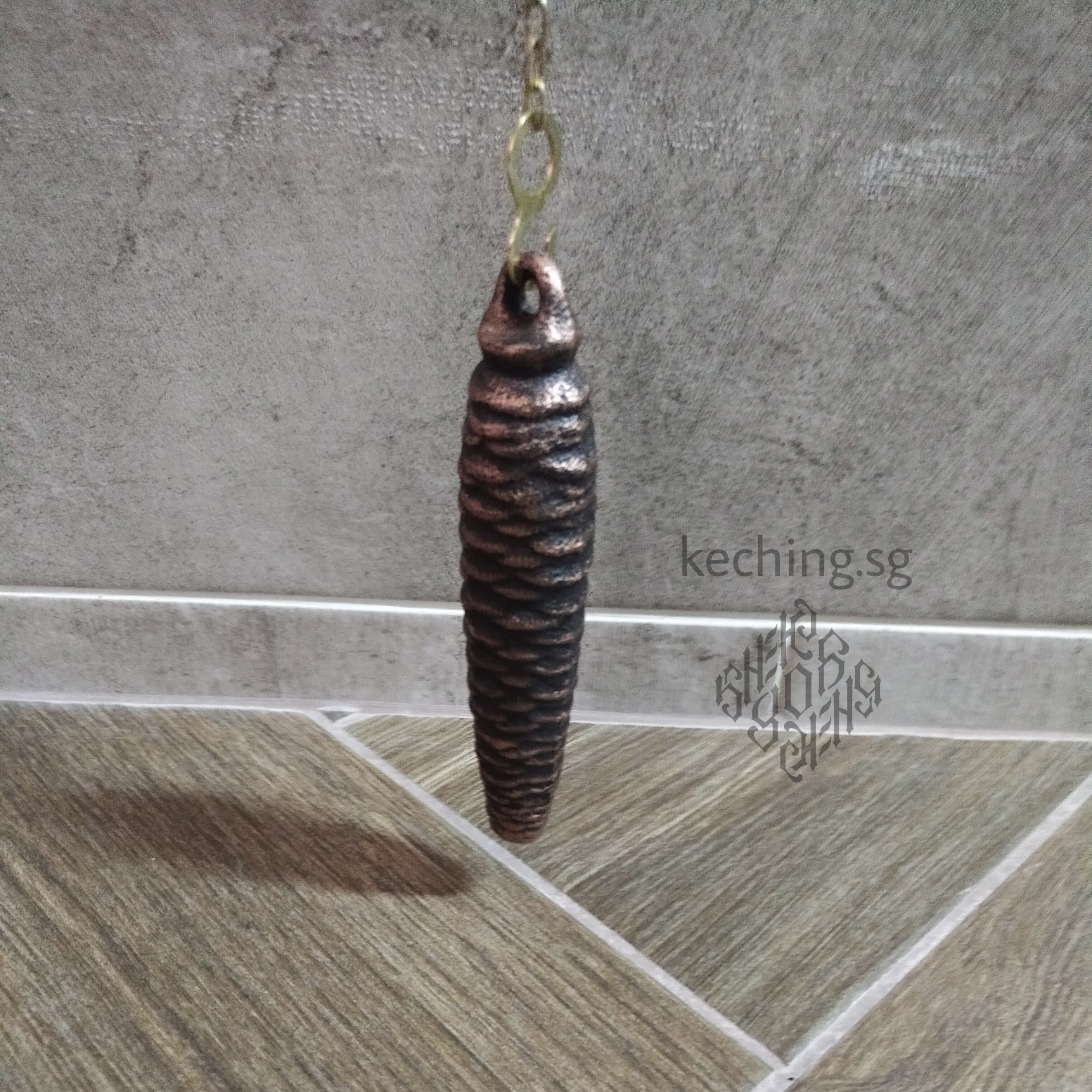 Pine weights hung on the chains. Downton Abbey doorbell still not yet installed.
