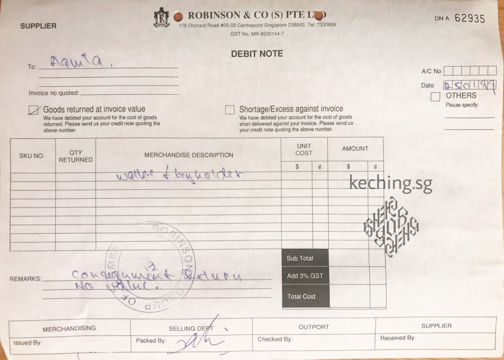 Just one debit note dating back to 27th December 2002, out of many years and trade with other Robinsons related companies like John Little. It is just one of many paper documentation that lies in our storeroom.