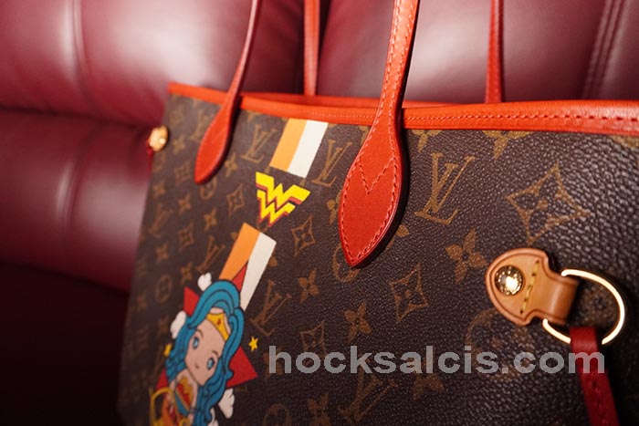 Replacement of Vachetta leather to red Leather to matches the theme of the bag.
