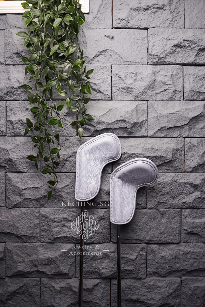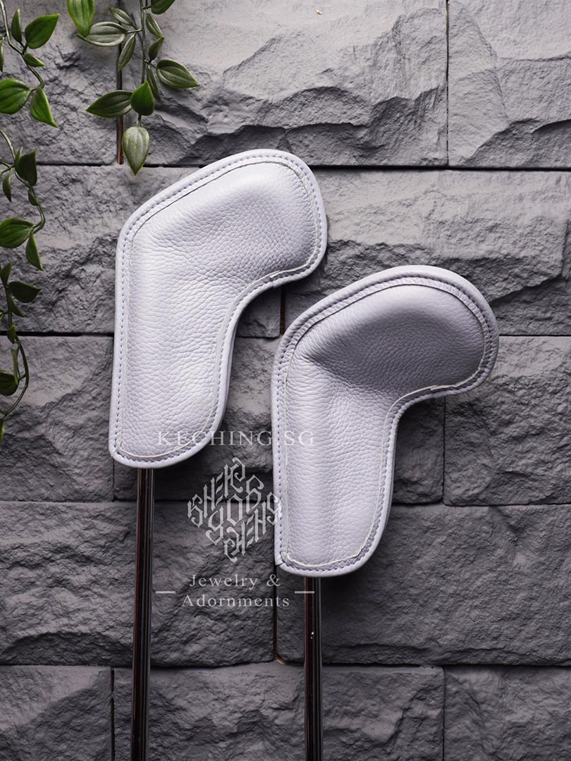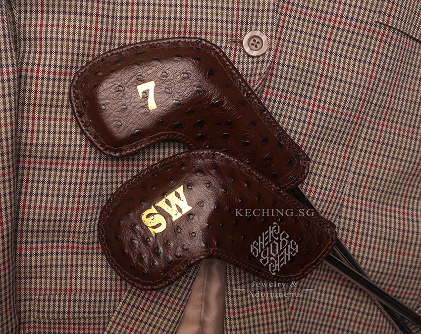 Latest: we were commissioned by client to craft our brown ostrich with gold foil printed loft numbers. By extension, personalisation or insignias of golf teams can be printed as well.