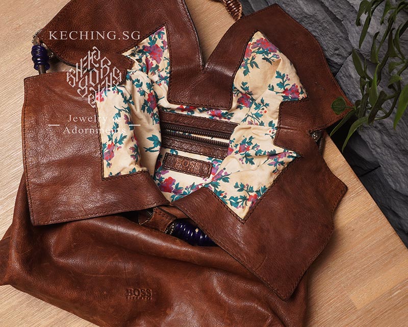 A bag can be saved when the worn out area can be isolated completely from the bag, for example the bag handles, sling and brim piping. By “completely”, I refer to parts where both the inner and outer seams can be seen and as a result, can be unpicked from both the inside and outside (see photo below). If the inner seams are covered by an inner fabric lining, the part in question cannot be touched. This applies to zips as well.